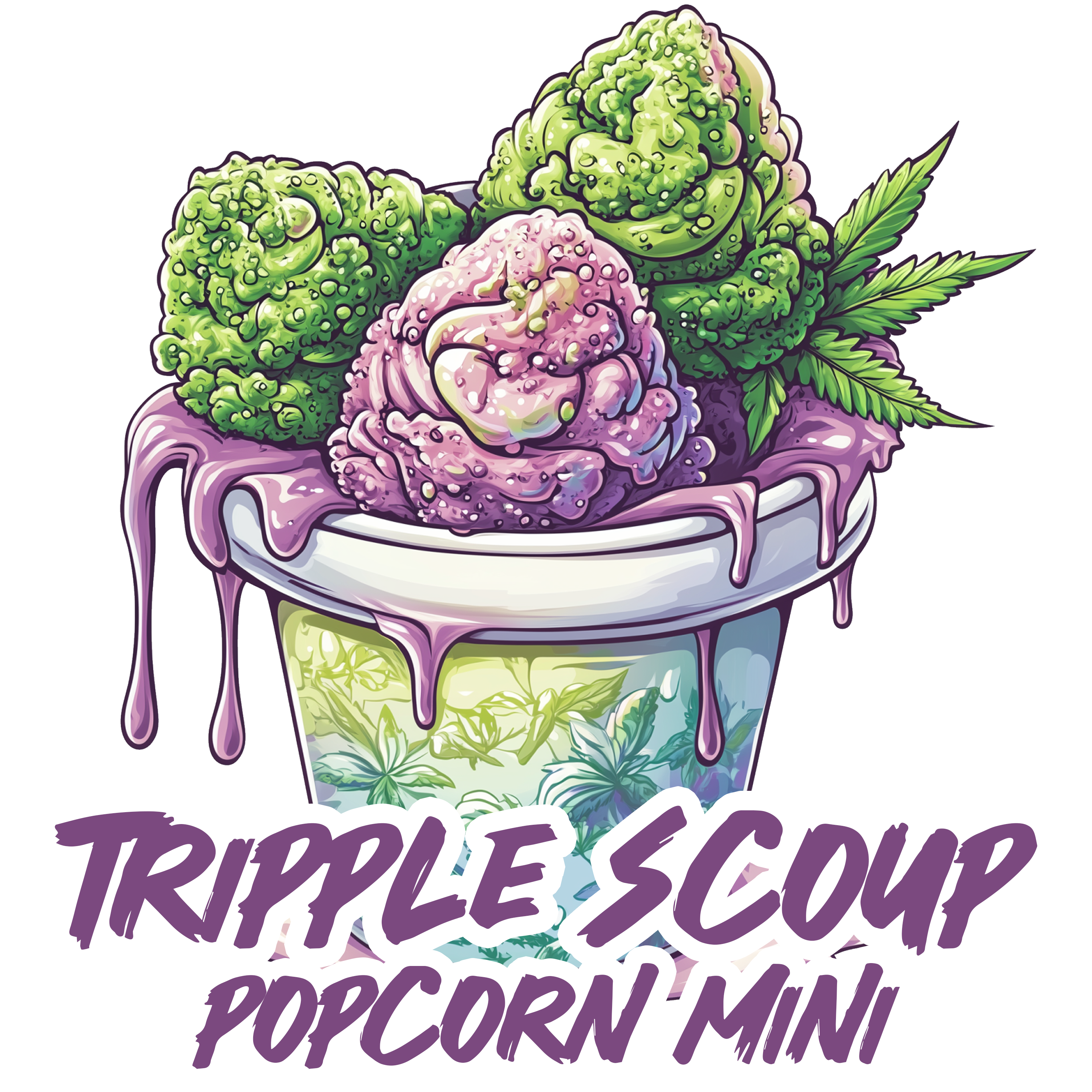 Introducing Tripple Scoup Popcorn Mini, an AAA+ grade cannabis strain that combines the best of both worlds with a 60% Indica and 40% Sativa genetic profile. This compact variant offers a robust 24% THC content, perfectly packed into small, popcorn-sized buds that deliver potent effects and a rich flavor profile.