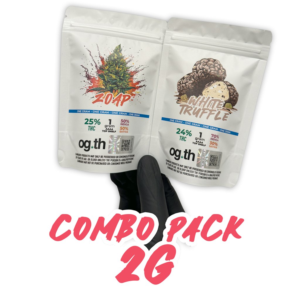 Dive into a world of premium cannabis with our Zoap & White Truffle Combo Pack, showcasing two exquisite strains that blend the best of Indica and Sativa qualities: