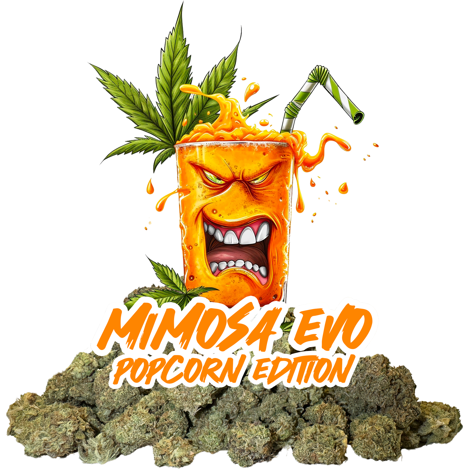 Introducing Mimosa Evo Popcorn Edition, a luxurious AAAA-grade cannabis strain now offered in delightful, popcorn-sized buds. This version retains the remarkable 23% THC level and the well-balanced 60% Indica and 40% Sativa genetic blend of the original Mimosa Evo, delivering an equally enchanting experience in a smaller package.