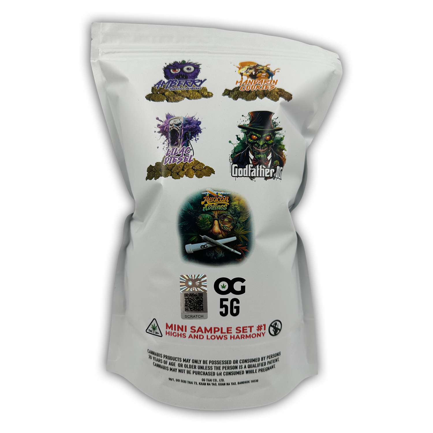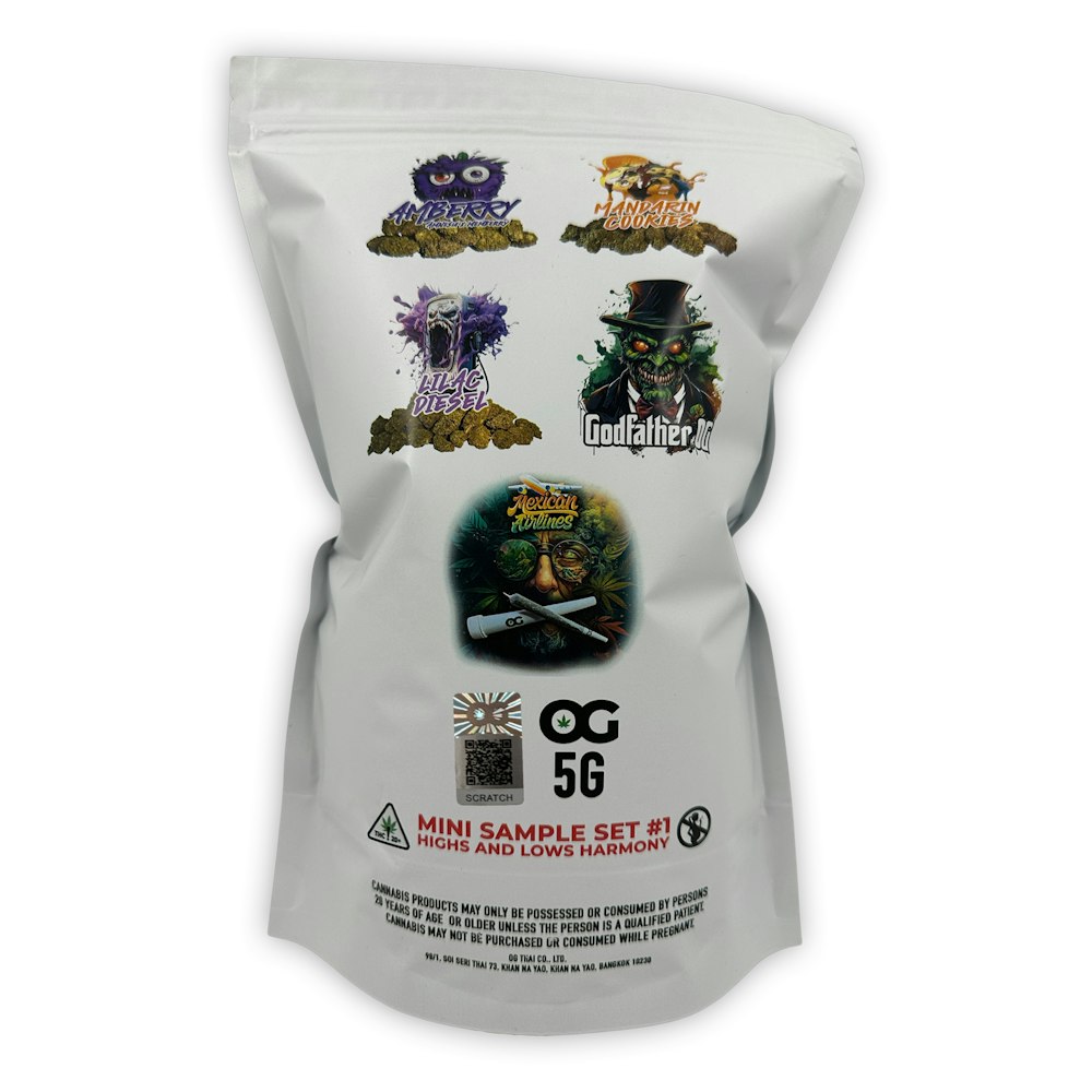 Introducing "MINI SAMPLE SET #1: HIGHS AND LOWS HARMONY" - a specially crafted cannabis sampler set designed to deliver a harmonious blend of uplifting and calming experiences. This collection features four distinct strains, each with its unique aroma, flavor, and effects. Plus, enjoy a bonus 1g preroll of Mexican Airlines and a waterproof preroll case, perfect for celebrating Songkran. With a total of 5 grams, this set is ideal for both cannabis enthusiasts and beginners seeking a symphony of sensations.