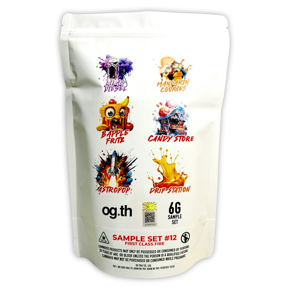 Introducing SAMPLE SET #12: FIRST CLASS FIRE - an elite collection of our top strains, offering a unique experience for the discerning cannabis enthusiast.