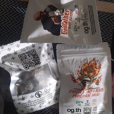 Despite its smaller size, the Dante's Inferno Popcorn Mini packs a potent punch, encapsulating all the intense flavors and effects of its larger counterparts. The aroma is rich with notes of chocolate and cookies from the Oreoz side, complemented by the pungent diesel hints from Devil Driver, creating a complex and inviting scent.