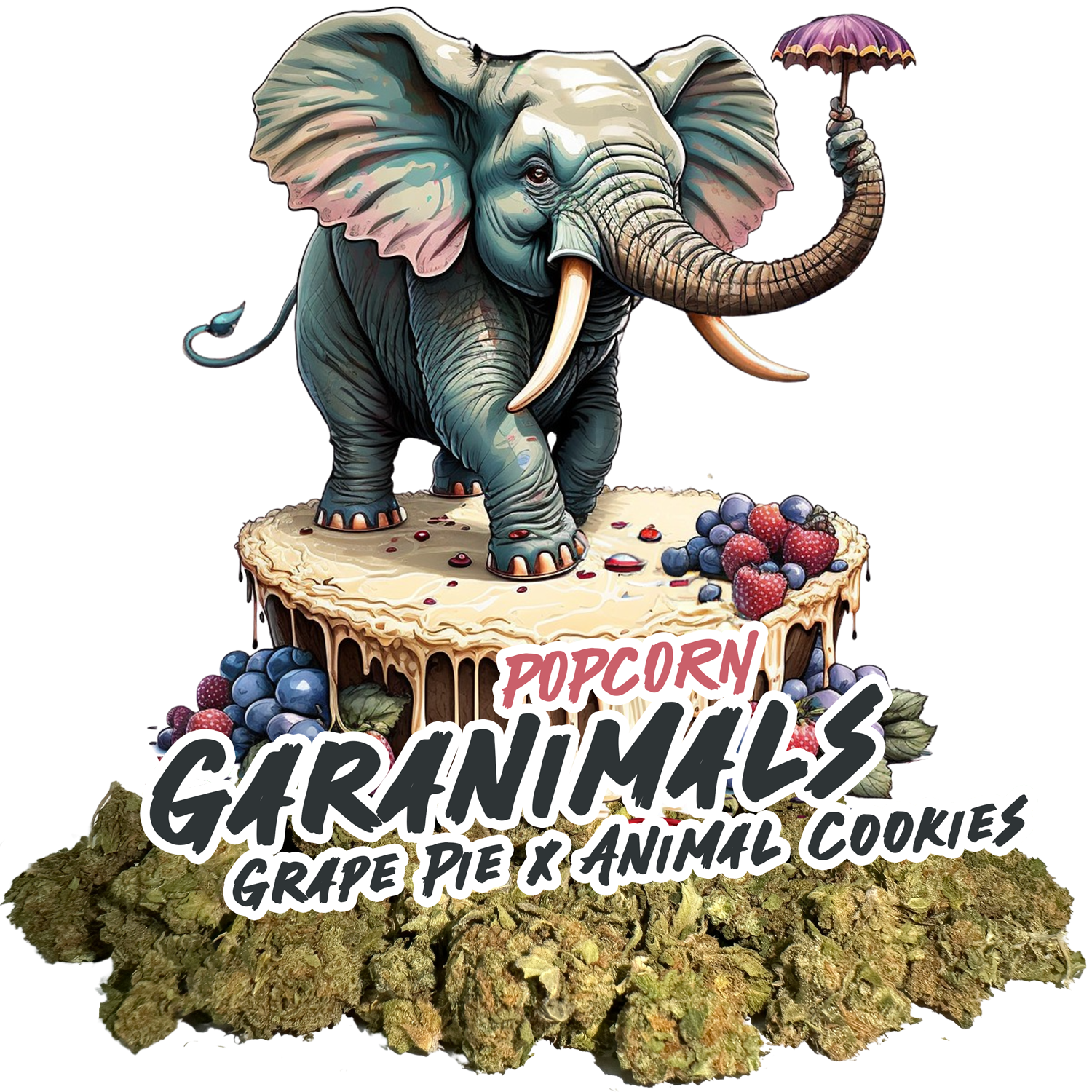 Granimals, also known as "Garanimals," is a potent indica marijuana strain made by crossing Grape Pie with Animal Cookies. This strain produces calming and euphoric effects accompanied by a tingly, full-body high. Granimals is ideal for winding down in the evening after a long day at work. This strain features an aroma that is doughy and spicy. Growers say Granimals is camouflaged with dense purple and green trichomes that provide a silver glow to the plant. Medical marijuana patients choose this strain to help relieve symptoms associated with stress and anxiety. Granimals has enjoyed favorable attention among the cannabis community, but it's important to point out the contraversy behind this strain. The strain name "Garanimals" is actually a trademarked brand name for a popular line of children and baby clothes. The strain names mentioned here are not associated with the brand name Garanimals or any of its brand variations.
