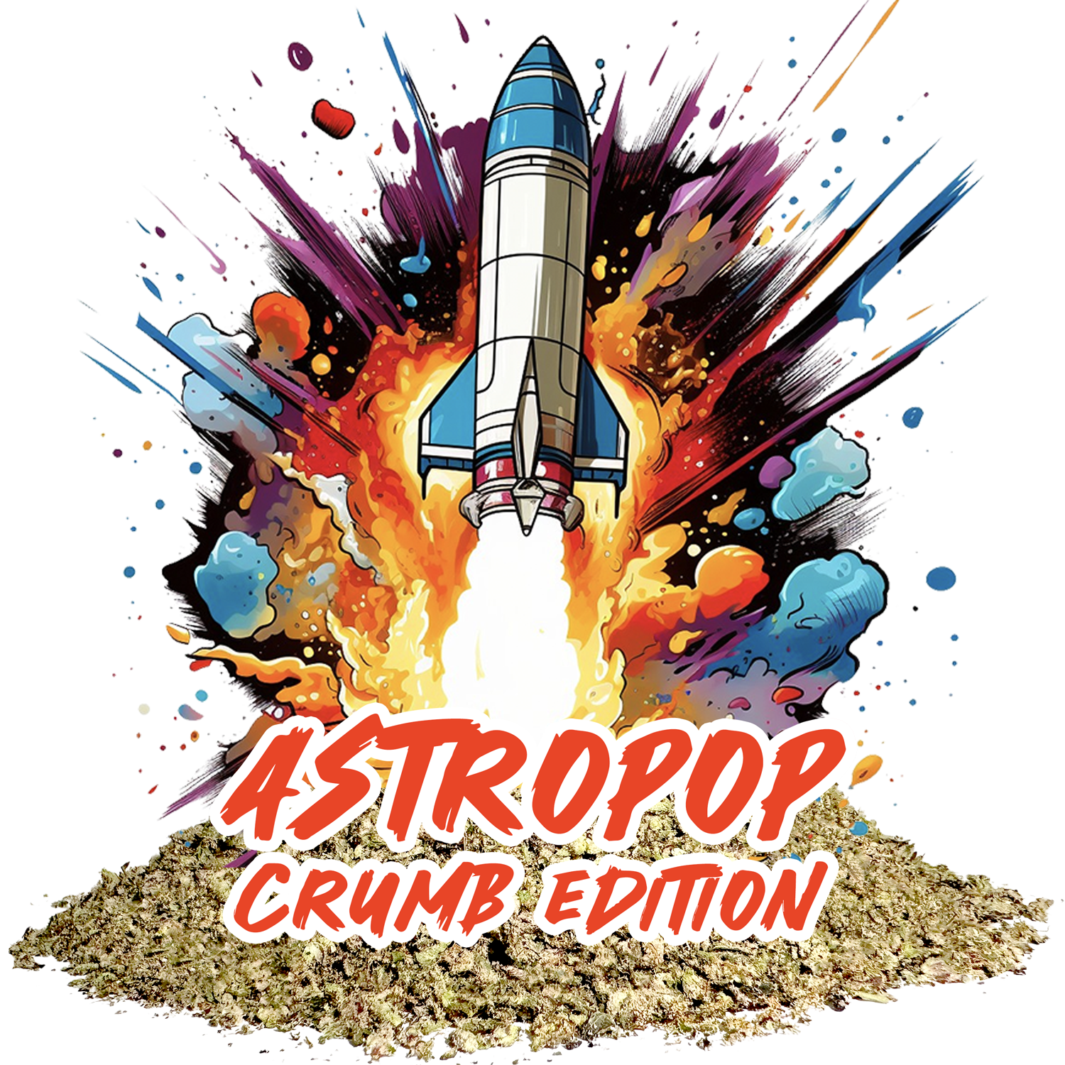 AstroPop Crumb Edition brings you the delightful spice of a rare and potent hybrid in an easy-to-use format. Experience the unusual, yet captivating hint of kerosene, intermingled with the spicy and fruity notes that make this strain a sought-after choice. Its enticing aroma combines sweet and sour notes, with pronounced apple and grape undertones that truly set it apart.