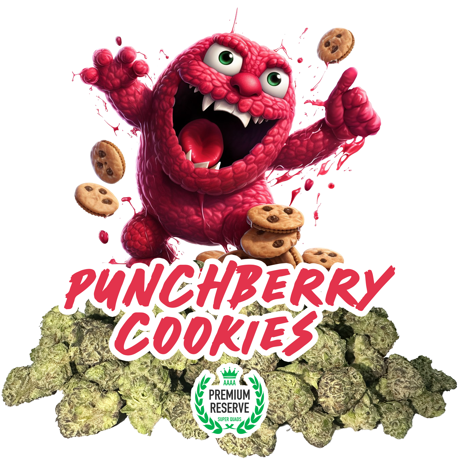 Introducing the Punchberry Cookies Premium Reserve Edition, the most exclusive selection from our harvest, so exceptional that it ascends to the level of 'Super Quads.' This grade is reserved for the utmost quality, excelling in potency, terpene profile, trichome density, and overall aesthetics. Such distinction is so rare that these buds are often what growers save for themselves, making availability extremely limited.