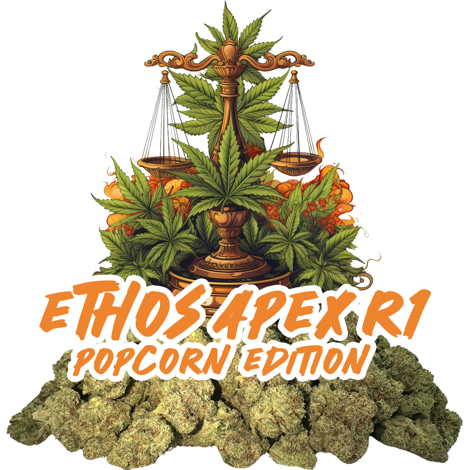 With Ethos Apex R1 Popcorn Edition, prepare for a deeply relaxing yet pleasantly uplifting experience, perfectly capturing the essence of its parent strain in a compact and potent form.