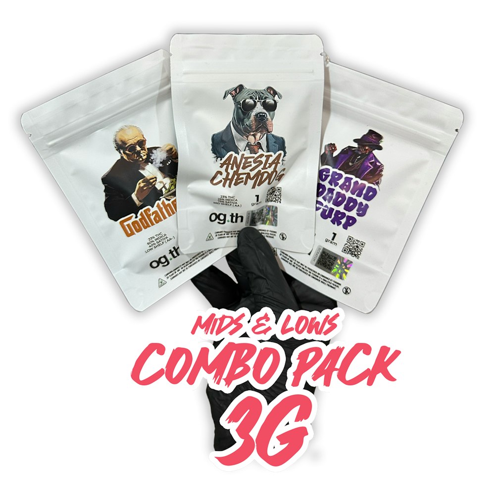 Introducing the Mids & Lows combo pack, featuring three different strains, each weighing one gram: