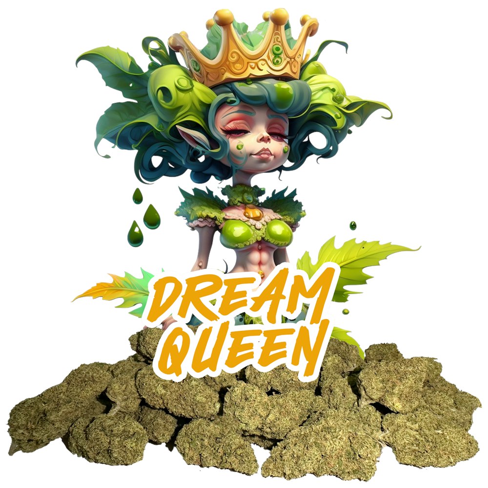 Welcome to the magical world of Dream Queen, a whimsical hybrid marijuana strain that will captivate your senses! This delightful blend of Blue Dream and Space Queen features a 30% indica and 70% sativa split, offering a balanced experience for those seeking a potent and uplifting high. With a dreamy 26% THC level, Dream Queen promises an unforgettable adventure.