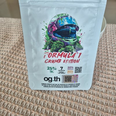 Introducing Formula 1 Crumb Edition, a perfectly balanced AAAA grade cannabis product with a precise 50% Sativa and 50% Indica genetic composition. This crumb version offers a potent 25% THC level, ensuring a powerful yet even experience suitable for various needs.